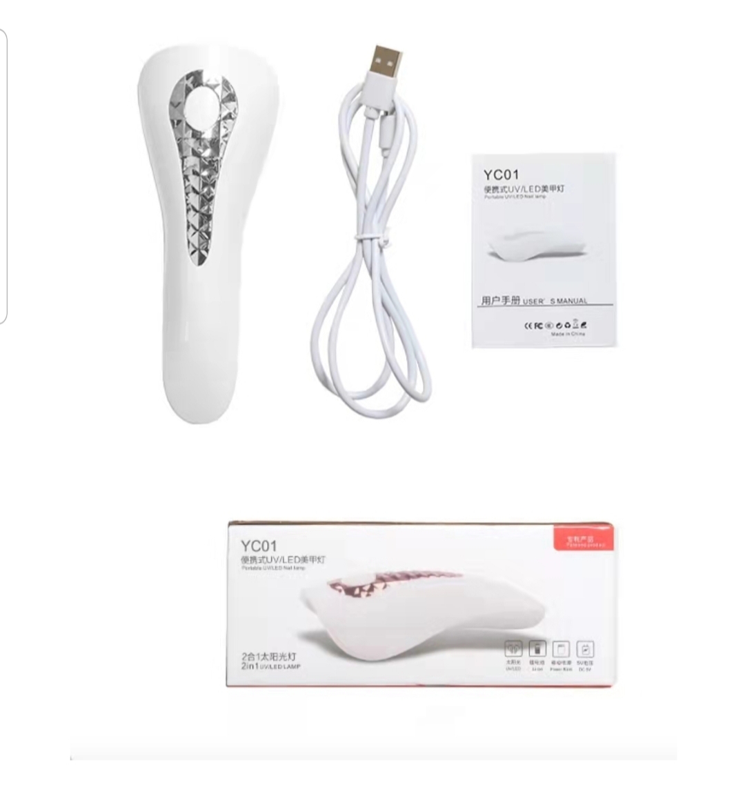 Portable and rechargeable flash cure lamp designed for quick gel curing and nail art sealing. Lightweight and easy to handle—ideal for spot curing and mobile nail technicians.